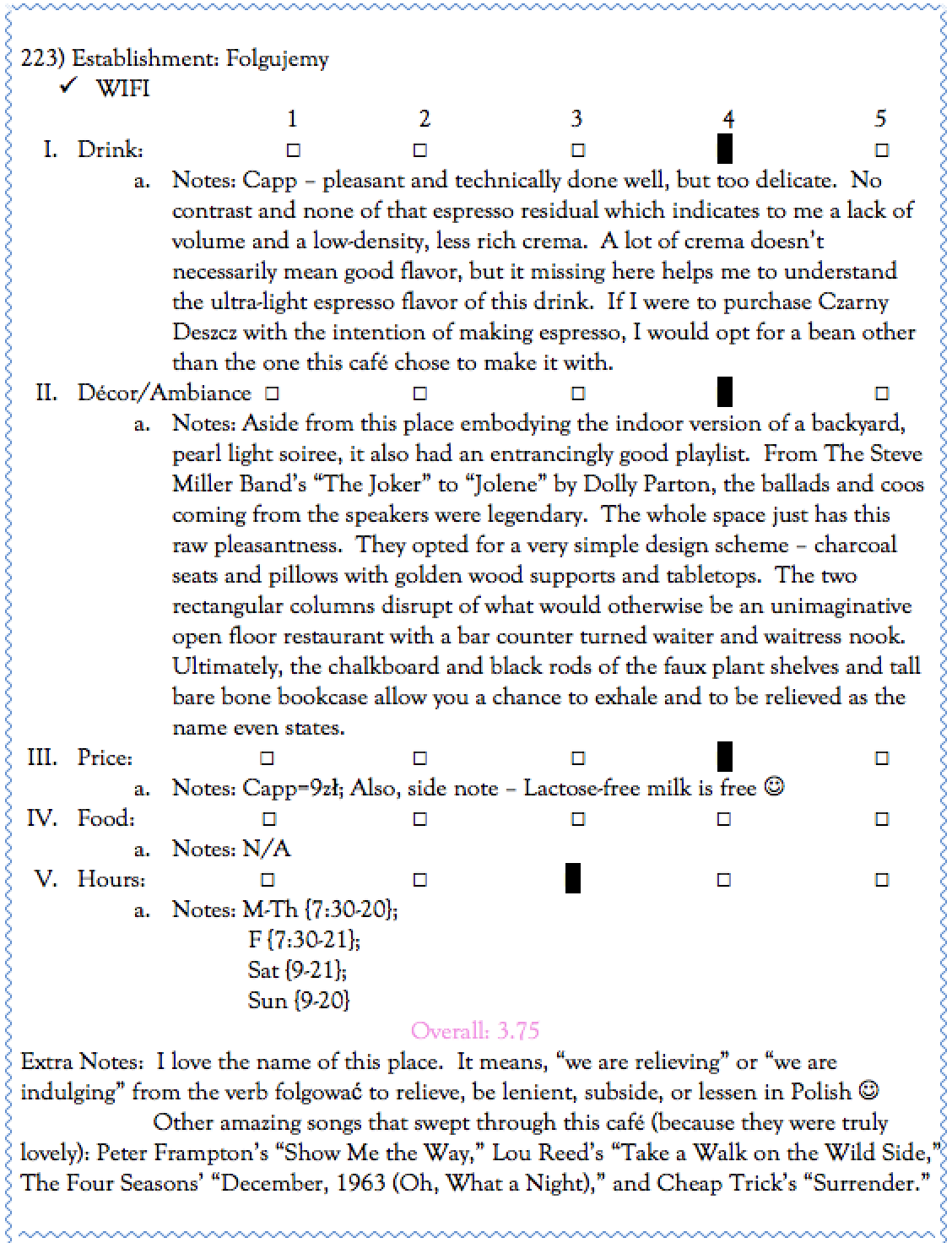 But the coffee. Thank you Czarny Deszcz. It was full all the way through. When you get a black coffee and they make you an Americano, you frequently get a cup of coffee that tastes spotty or dulled. This cup boasted a flavor, soured by fruits that balanced with a well-rounded, caramel kind of sweet. Not only is it a cup that has a distinguishable initial bite, it is a cup of coffee that’s bite is the vigor of its base flavor for the life of the drink.